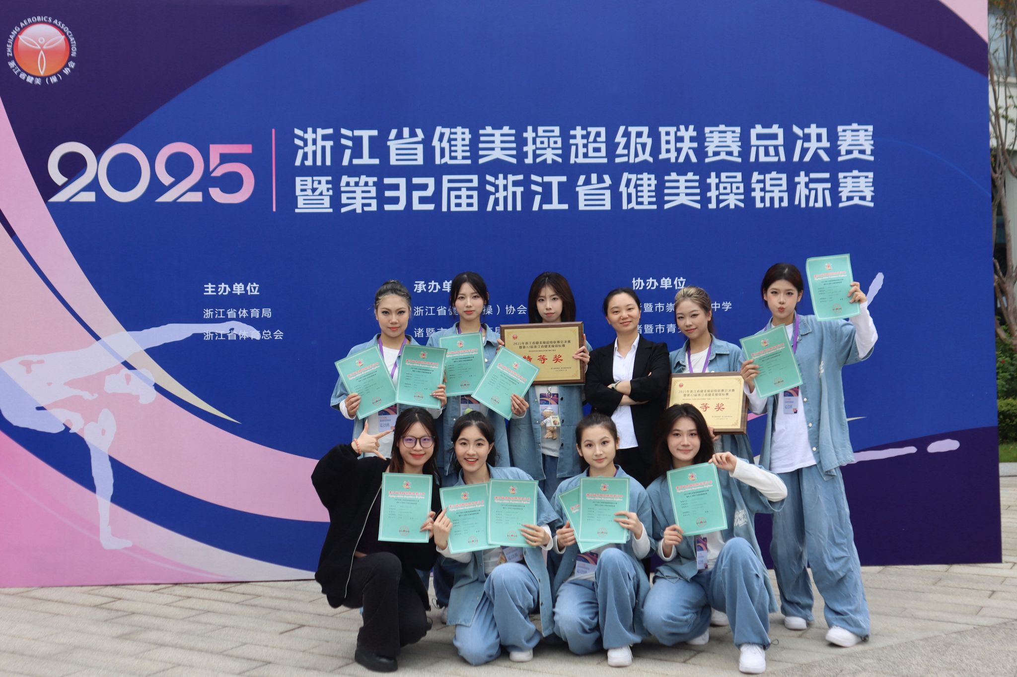 在刚刚落下帷幕的浙江省第32届健美操锦标赛上,学院啦啦操队和街舞队以惊艳的表现闪耀赛场。经过激烈角逐,两支队伍在四个参赛项目中均以绝对优势将特等奖收入囊中,充分展现了我院学子卓越的竞技水平和昂扬向上的精神风貌。