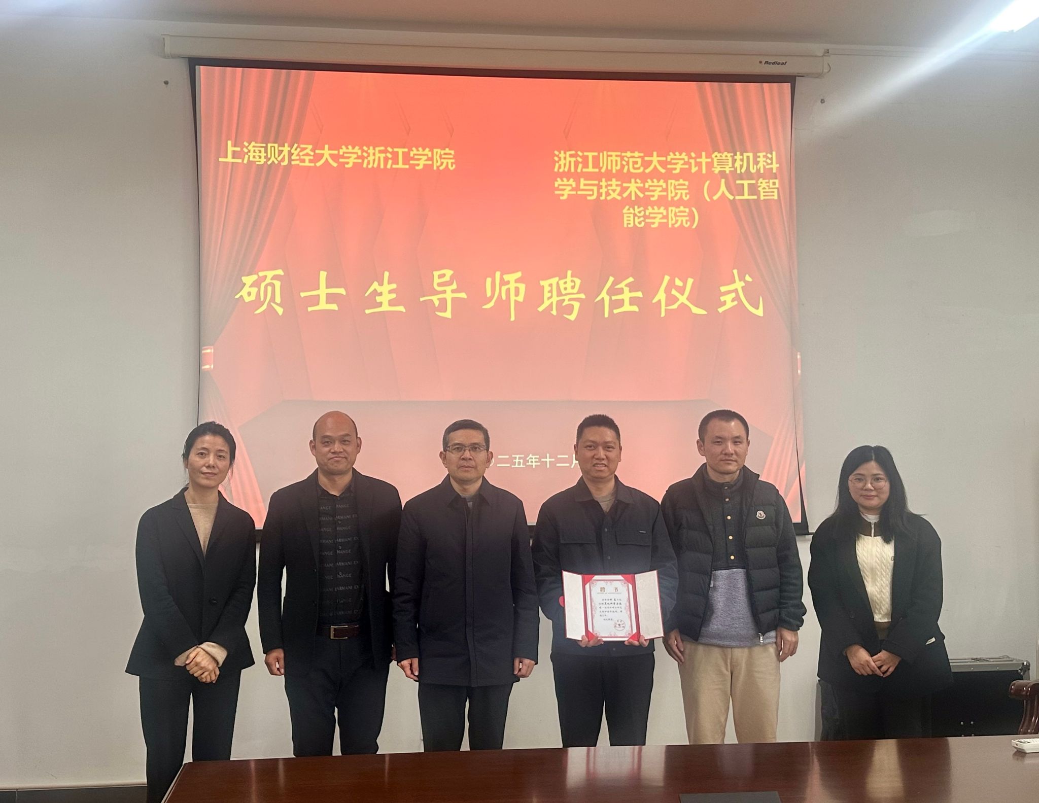 12月4日下午,学院与浙江师范大学计算机科学与技术学院(人工智能学院)在28幢308会议室举行了兼职硕士生导师聘任仪式。浙江师范大学计算机科学与技术学院(人工智能学院)副院长贾日恒、学科建设与研究生办公室主任戴情,学院院长江晓东等参加聘任仪式。