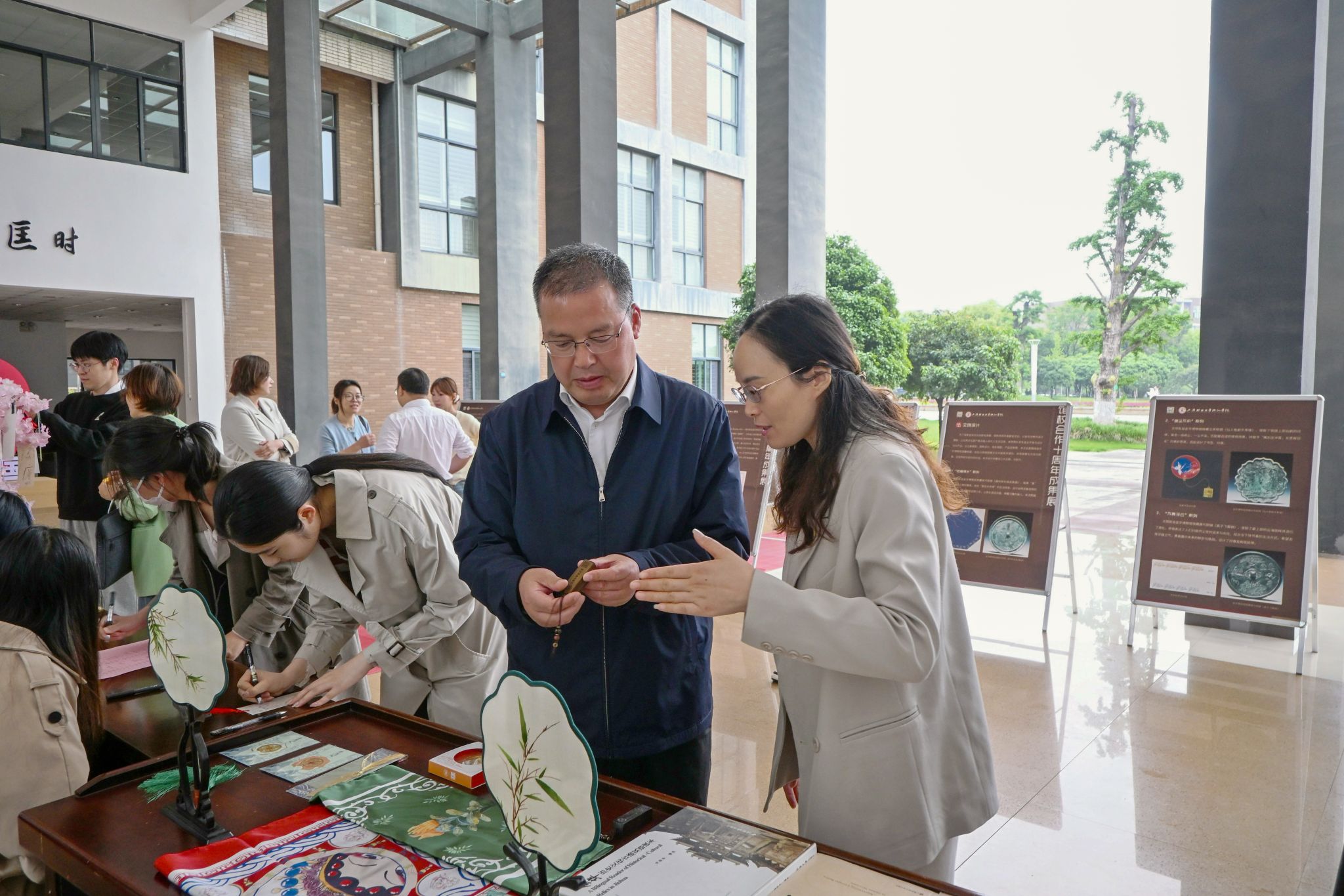在活动现场,王建新参观婺文化译播成果与校地文创产品展区,详细听取学院在文化传播、校地合作、产教融合、特色发展等方面的工作汇报,对学院前期建设成果给予充分肯定。王建新指出,学院要坚守办学初心、锚定发展方向,以语言为桥、以文化为核,持续夯实学科根基,全面提升办学内涵与核心竞争力;要强化特色引领、打造品牌优势,深耕婺文化国际传播与校地深度融合,不断提升办学辨识度与社会影响力;要主动服务地方、践行使命担当,紧扣区域发展战略需求,在复合型人才培养、优秀文化传承创新、社会服务能力提升上展现新作为、作出新贡献。