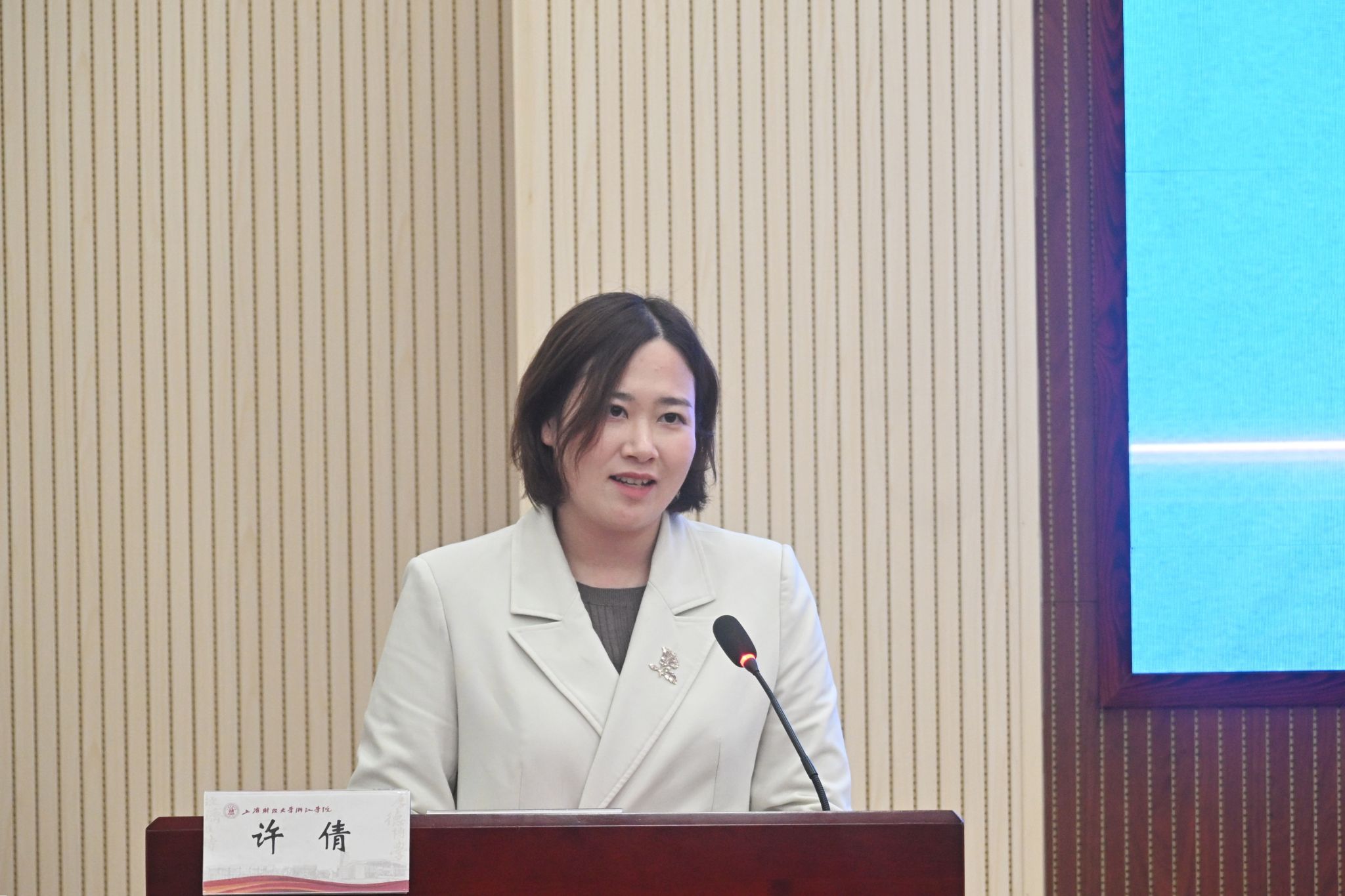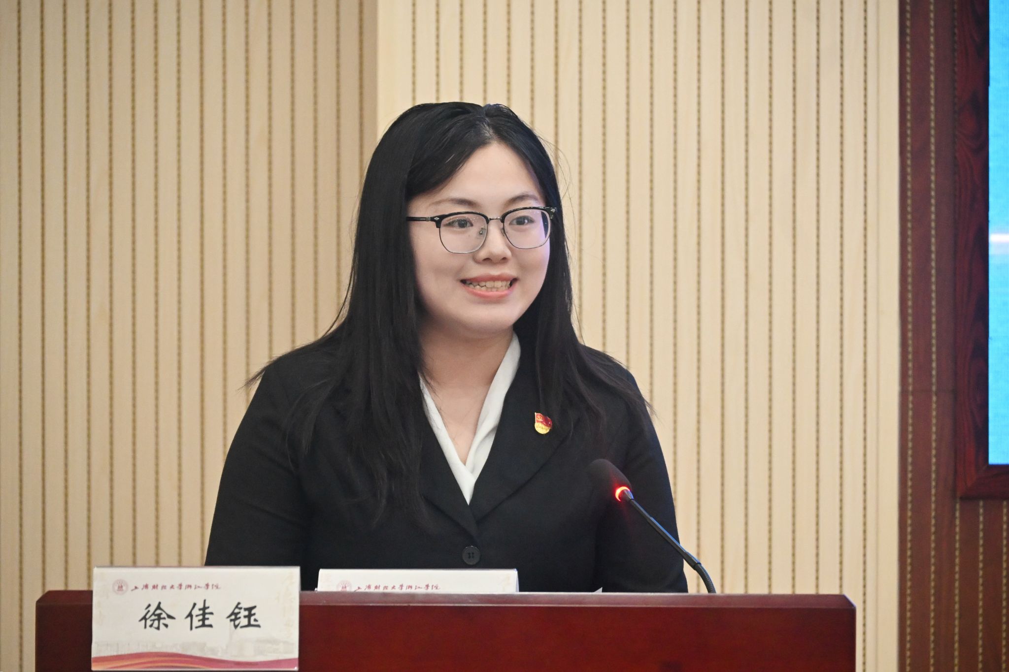 随后,金华市博物馆副馆长许倩作为校地合作代表发言祝贺学院揭牌成立,肯定学校办学成效,表达深化校企合作、携手共赢的期望。23商务英语二班徐佳钰作为学生代表发言,送上对学院的祝福,表达了勤学笃行、助力文化传播的决心。
