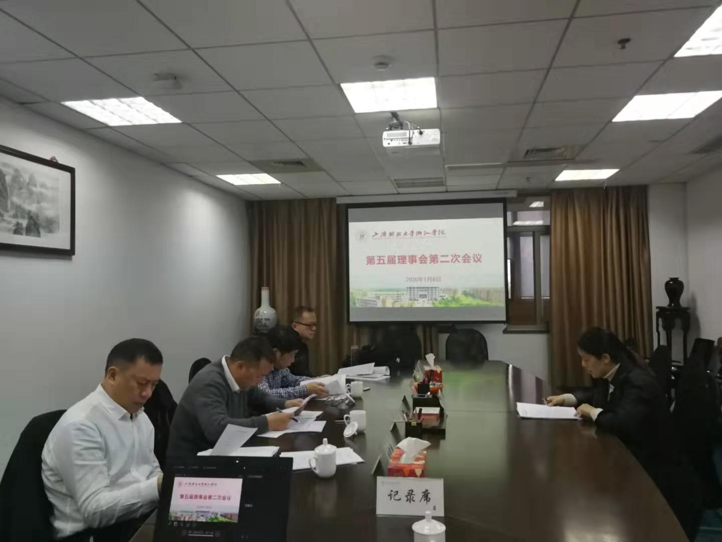 1月8日,学院在上海财经大学行政楼四楼会议室召开五届理事会第二次会议,上海财经大学校长助理郑少华,金华市国资委主任、党委书记扬霄雁,学院理事长、党委书记王建新,院长马洪参加会议。会议由王建新主持。