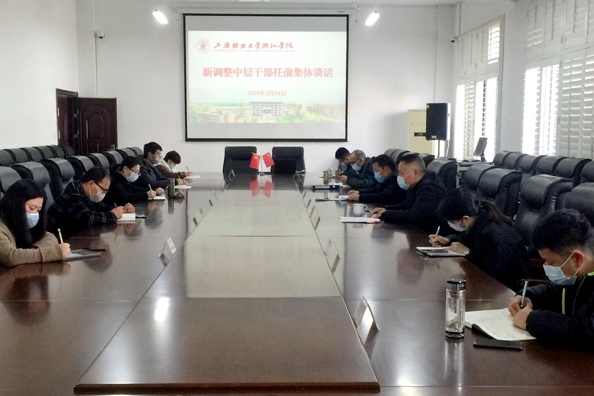 2月24日上午,学院召开新调整中层干部任前集体谈话会。党委书记王建新出席会议并提出要求,强调要坚定不移讲政治、重服务、强担当、严纪律,在新的岗位上忠诚履职、恪尽职守、担当作为,不辜负组织的信任和重托,奋力推动学院各项工作展现新气象、实现新作为。纪委书记陈钢作任前集体廉政教育谈话。会议由党委委员、组织部部长张正亮主持,党委委员、统战部部长徐玉芳,党委委员、宣传部部长郑伟俊出席会议。