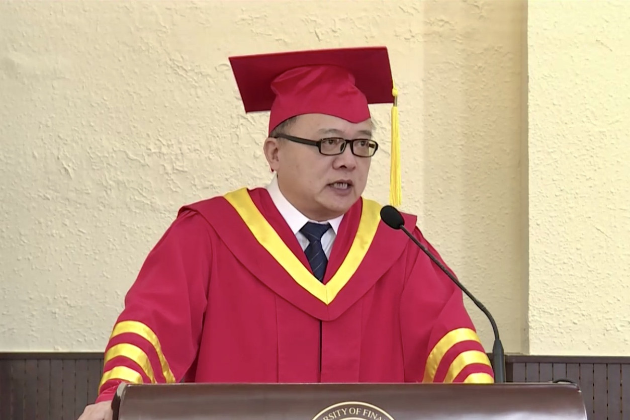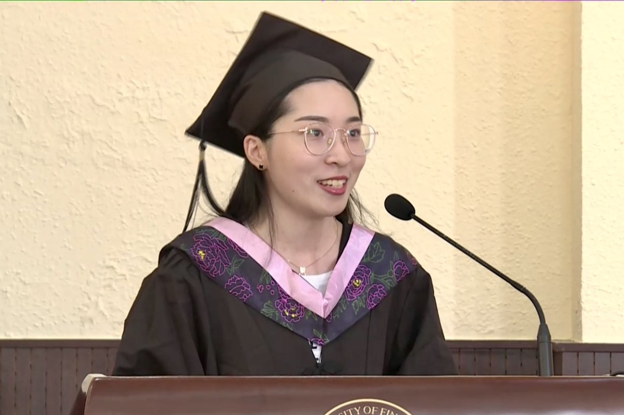 2020年浙江省优秀毕业生、2016级注册会计专业本科生汤菲代表毕业生发言。她回忆了在校学习的难忘时光,感恩母校的栽培、恩师的教诲、父母的养育、同窗的陪伴。她表示,自己将牢记母校的殷殷嘱托,不负韶华,努力奋斗,书写精彩人生。