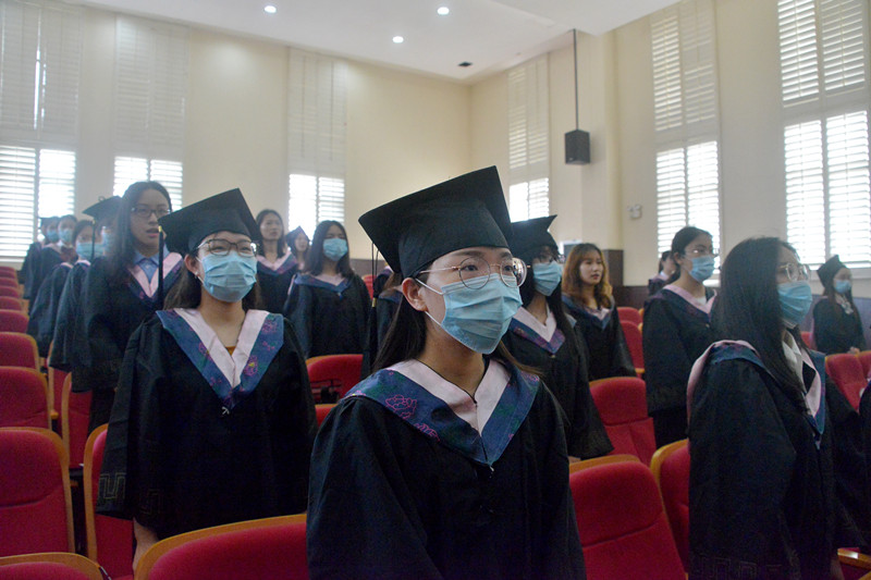 上午九时,毕业典礼在雄壮的国歌声中拉开帷幕。