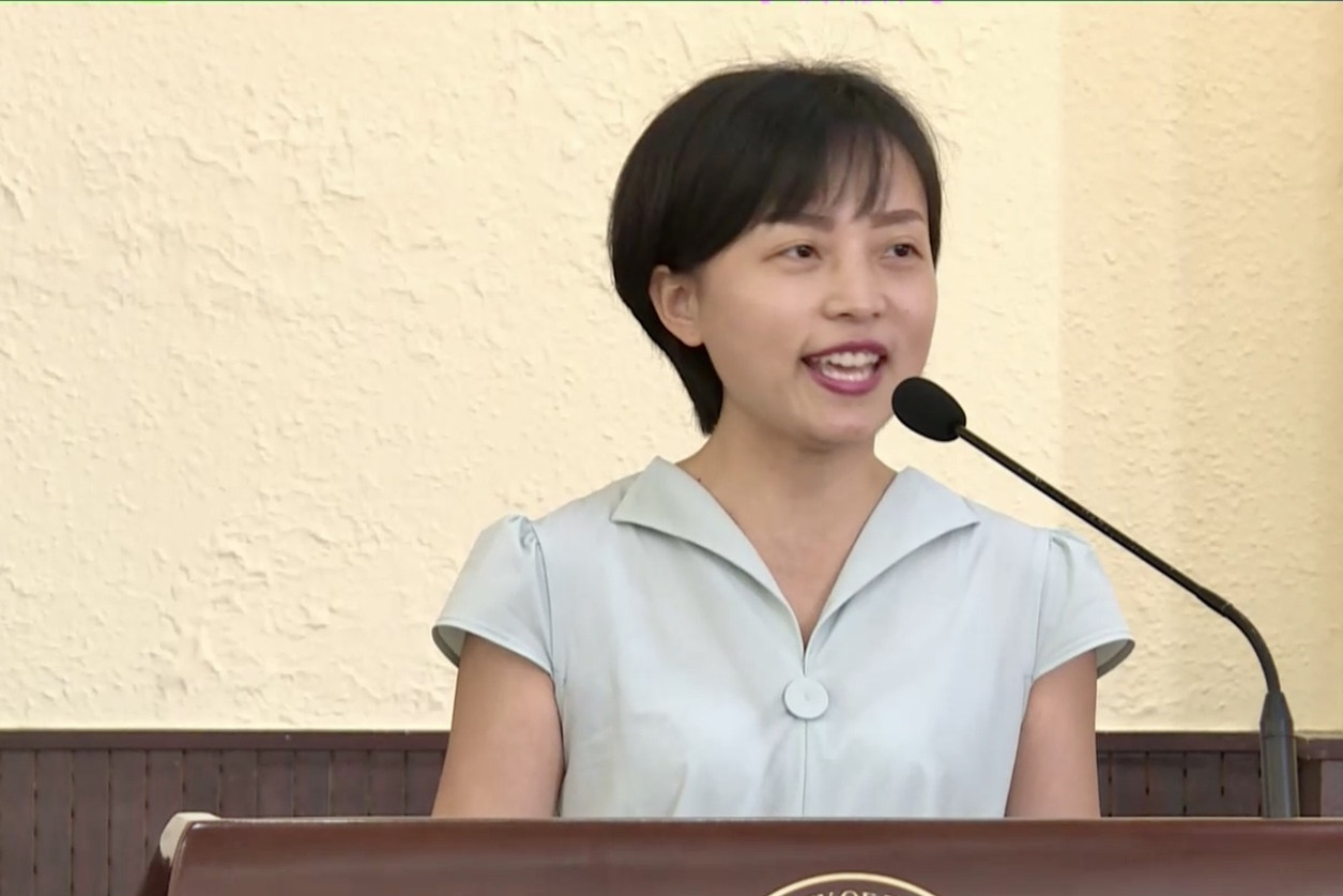 会计系张洁老师作为教师代表发言,她对同学们通过艰辛努力取得的丰硕成果表示祝贺。同时勉励同学们牢记“厚德博学 经济匡时”的校训,秉承正确的人生观、价值观和世界观,坦坦荡荡,走进社会,平平安安,走向未来。