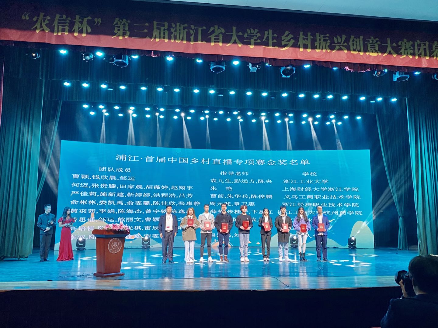 决赛三小时中,浦江副县长也亲临直播间助阵带货,最终实现总销售额14000余元的好成绩。团队全体成员历经初赛、复赛、决赛,最终荣获浙江省乡村振兴创意大赛直播专项赛金奖。