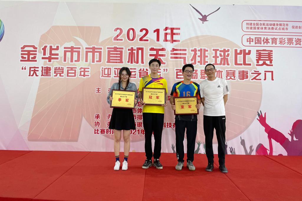 近日,由金华市体育局、中共金华市直属机关工作委员会、金华市总工会、金华市体育总会主办的2021年金华市直机关气排球赛在银创体育活动中心落下帷幕。本次比赛设机关男子组、机关女子组、国企事业男子组、国企事业女子组四个组别,共43支代表队,500多名机关干部、国企事业单位职工参加。