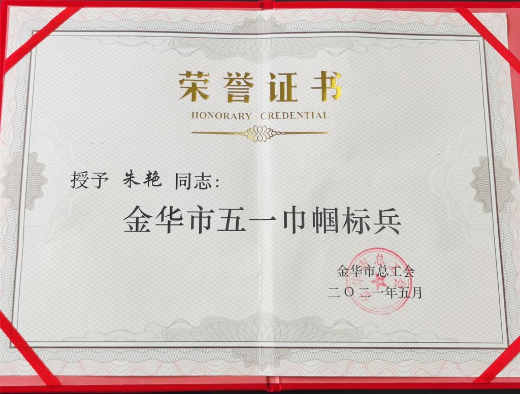 近日,金华市总工会下文表彰市“五一巾帼标兵”,我院朱艳老师荣获金华市“五一巾帼标兵”荣誉称号。 据悉,市总工会为了大力颂扬先进模范的伟大品格和时代精神,全市共选树出50名“五一巾帼标兵”,其中教育系统只有2人。