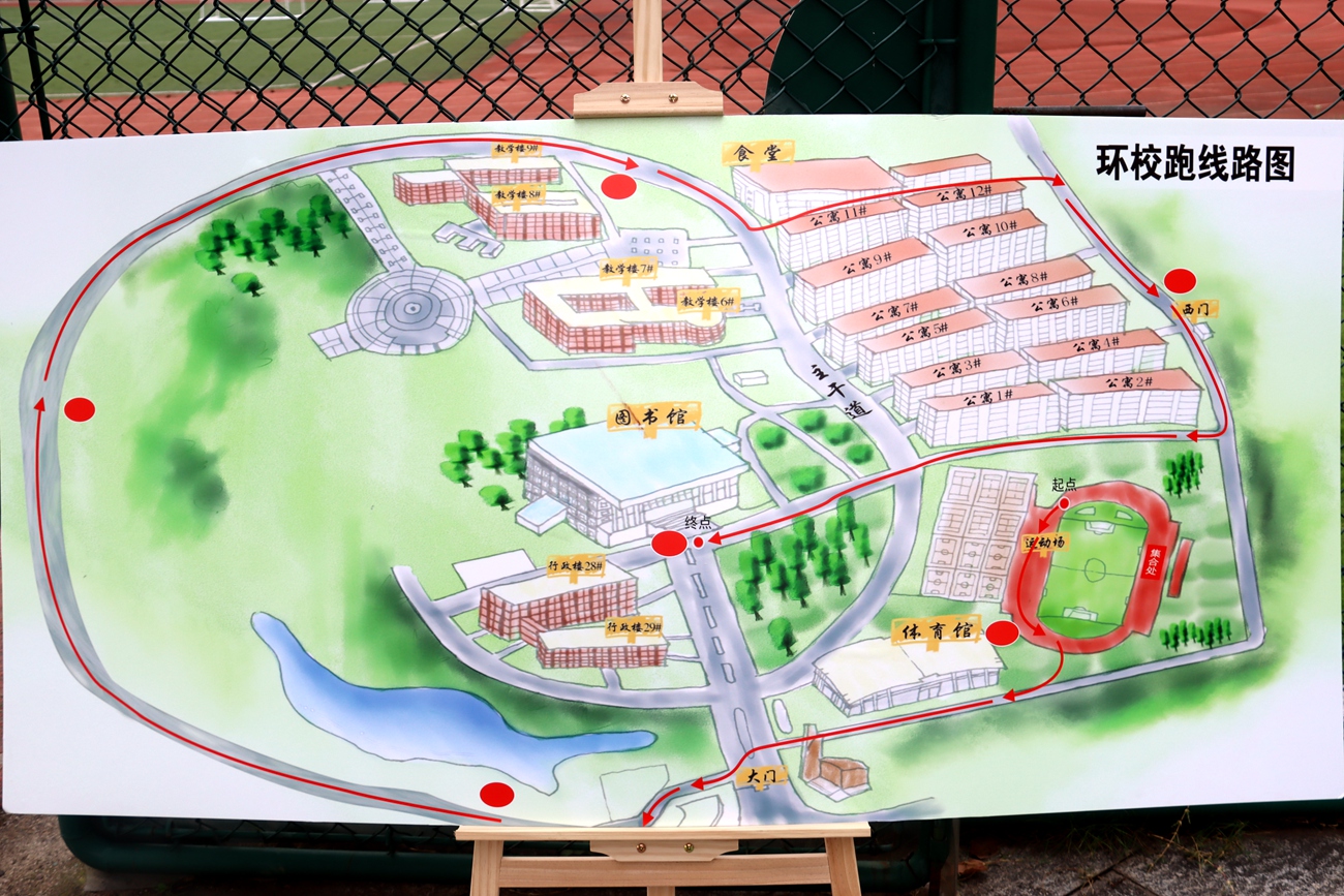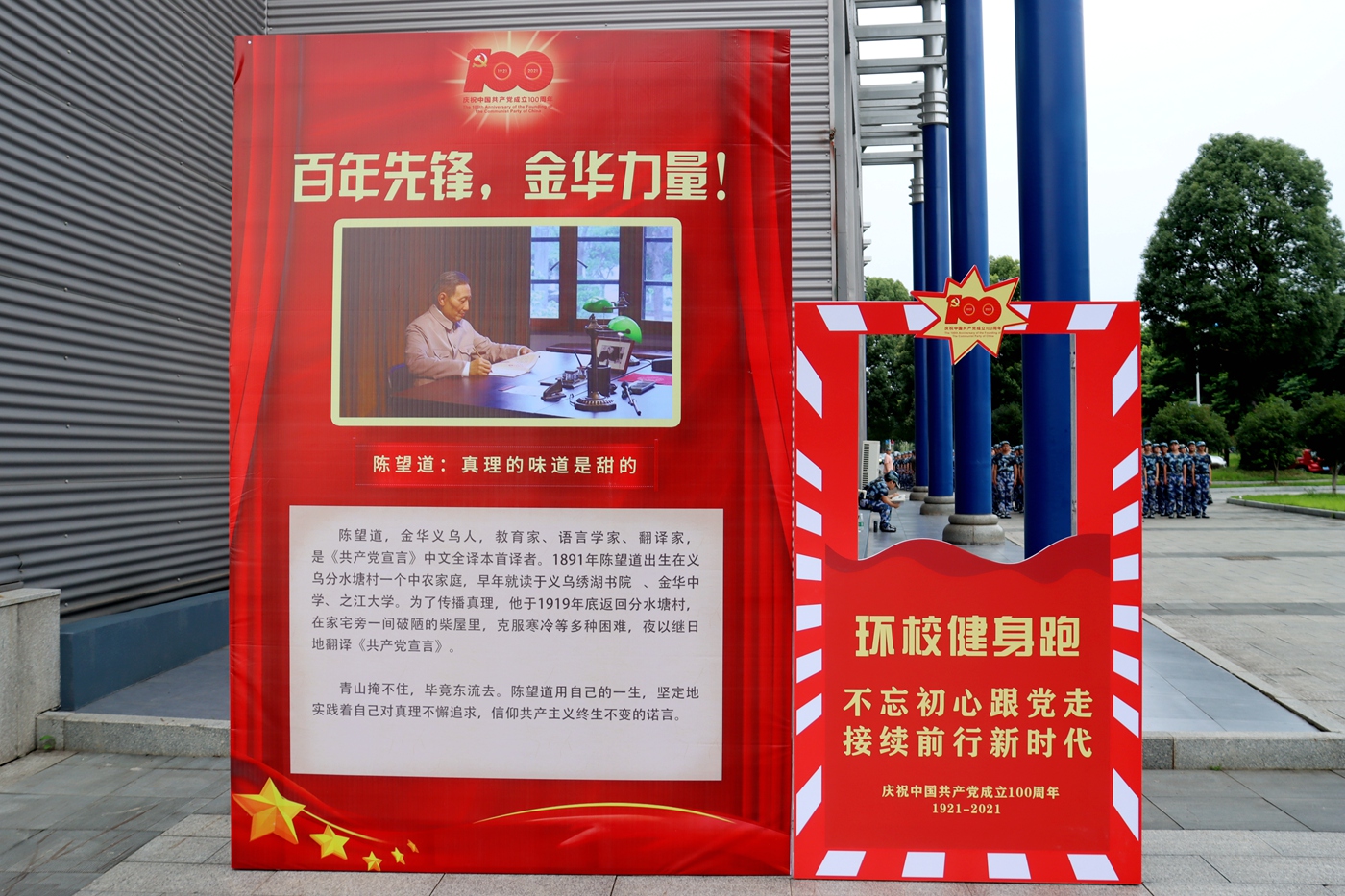此次环校跑总长3.5公里,沿线设置了以陈望道、严济慈、艾青、邵飘萍、施光南、冯雪峰等命名的6个打卡点,寓意在中国共产党的领导下,一代又一代的八婺儿女接续前行,奋勇争先。