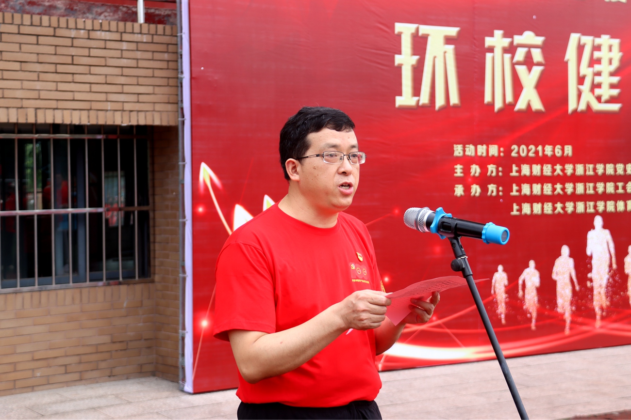 学院党委委员、副院长、工会主席曾惠成在启动仪式上致辞。他指出,此次环校健身跑是学院全面深入贯彻落实习近平新时代中国特色社会主义思想的推手,是唱响“党史教育主旋律”、合奏“筑梦财浙交响乐”、高歌“金华党史好故事”的有效载体。希望广大教职工进一步树立爱国爱校的情怀,增强强烈的责任感和使命感,将参与党史学习教育的热情转化为推动学院平稳高质量转设的激情。
