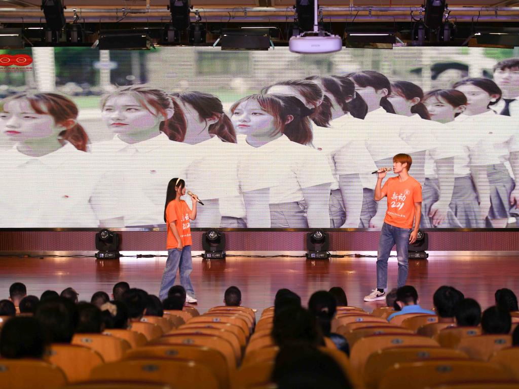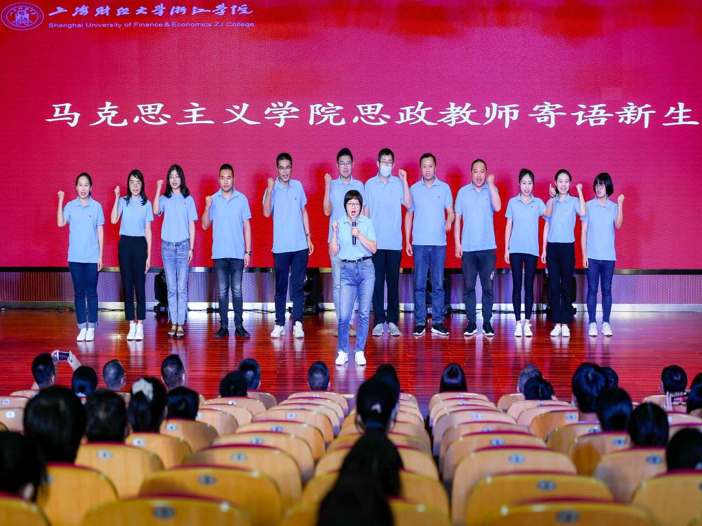 活动现场还播放了展示马克思主义学院全体思政教师风采的MV,全体思政教师现场寄语新生,希望他们能够在财浙这片充满希望的土地上,绽放青春梦想,书写绚丽篇章。大学生艺术团则带来了主题歌曲演唱《请党放心 强国有我》。
