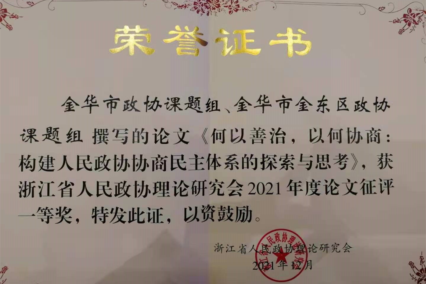 近日,金华市政协副主席许章才为马克思主义学院朱国华老师的政策咨询作出肯定性批示。他指出,朱国华同志执笔的论文阐述了我省政协系统构建协商民主体系的实践与思考,以全省第二名的佳绩获省政协理论研究一等奖,实在可喜可贺。