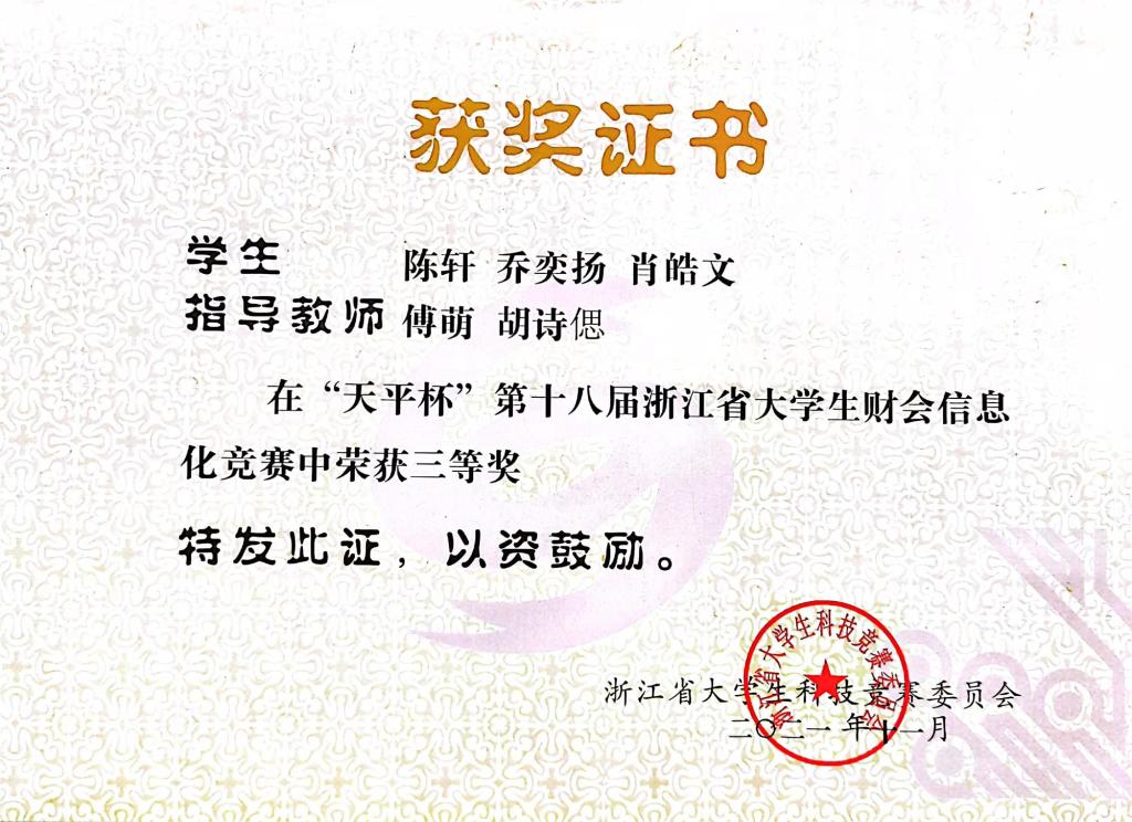 近日,由浙江省教育厅和浙江省大学生科技竞赛委员会主办,浙江工商大学承办的“天平杯”第十八届浙江省大学生财会信息化竞赛决赛(A类)落下帷幕,此次比赛吸引了来自全国各地68所学校、685支队伍、2055名学生参赛,分传统组和案例组两个赛道。我院学子在会计系傅萌、胡诗偲老师的悉心指导下,从初赛突围进入决赛,最终肖皓文、乔奕扬、陈轩团队的作品《浴火能否重生——麦趣尔集团股权质押纾困案例分析》荣获本科案例组三等奖。