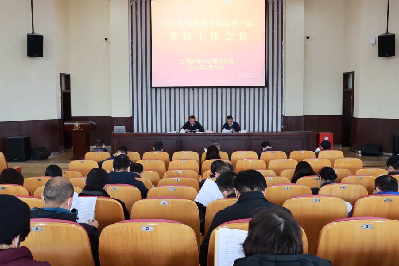 1月20日上午,学院在行政楼报告厅召开2021年领导班子和领导干部考核会议。市委组织部考核组成员、学院党政领导班子成员出席会议,学院中层干部、高层次人才代表、教代会代表、民主党派代表等参加会议。会议由党委书记王建新主持。