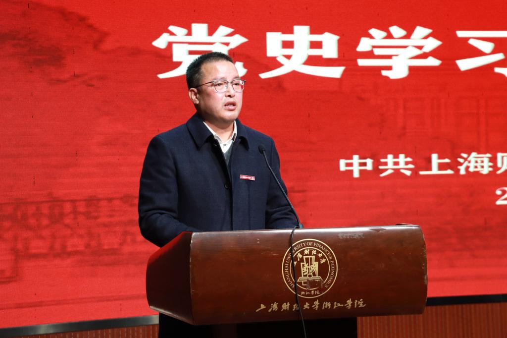 王建新强调,党史学习教育永远在路上,要不断巩固拓展学院党史学习教育成果,大力传承弘扬伟大建党精神,推动党史学习教育常态化开展,为推动学院各项事业高质量发展提供坚强保障。一要持续强化政治引领,深入推进学院政治建设;二要持续聚焦立德树人,扩大党史学习教育影响力;三要持续坚守为民情怀,提升师生获得感与满意度;四要持续聚焦高质量发展,提升学院内涵。学院上下要更加紧密地团结在以习近平同志为核心的党中央周围,高举中国特色社会主义伟大旗帜,积极响应和自觉践行党中央号召,牢记初心使命,坚定理想信念,推动党史学习教育工作向纵深开展,自觉把党史学习教育作为学院长期坚持和落实的党内制度加以贯彻,不断将开展党史学习教育的热情转化为推动学院事业高质量发展的激情,持续推动党史学习教育常态化工作走深走实,在打造“重要窗口”、争创社会主义现代化先行省、高质量发展建设共同富裕示范区中扛起财浙担当,以实际行动和优异成绩迎接党的二十大胜利召开。