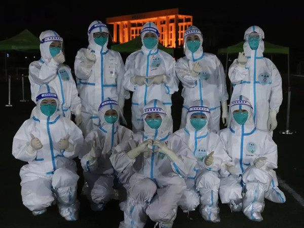 穿上防护服,摇身一变成为“蓝朋友”的老师们冲在疫情防控第一线,“蓝友力”爆棚,他们坚守在各个核酸检测点,控制人流;他们引导每位待测人员,井然有序。