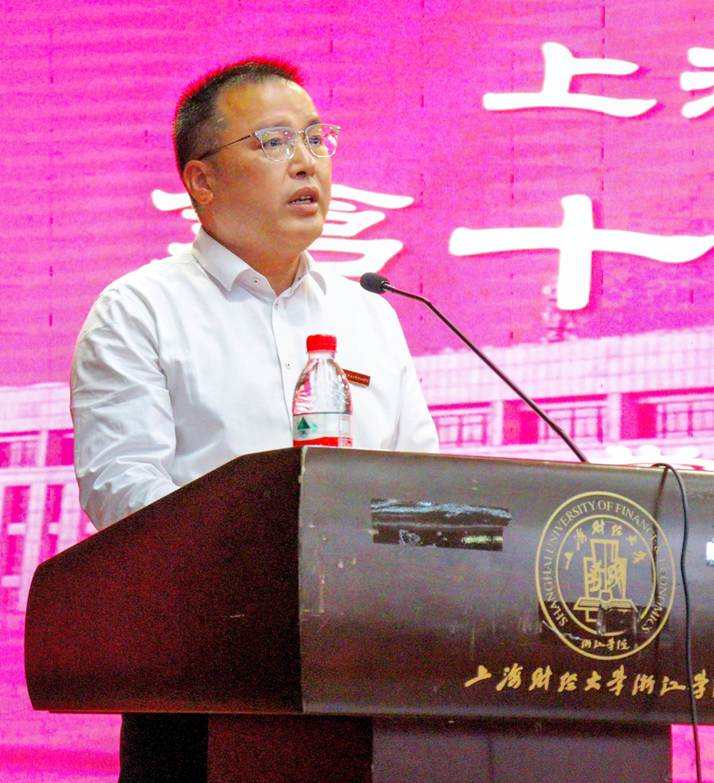 金华市学生联合会驻会执行主席何正冰代表市学联在大会上致辞。她提出学生会组织要强化思想政治引领,聚焦主责主业,持续深化改革,以全心全意服务同学为宗旨,用实际行动强化服务意识。