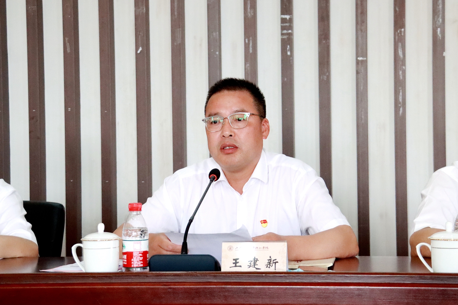 王建新在讲话中总结了学院2022年上半年全面从严治党工作,他指出,上半年学院按照“学指标、谋项目、定政策”的工作要求,持续推进“对标比拼”“项目谋划”“双万建设”三大攻坚战和“双学双融”活动,坚持不懈把全面从严治党向纵深推进,坚决扛起管党治党的政治责任,高质量党建引领高质量发展成效显著。