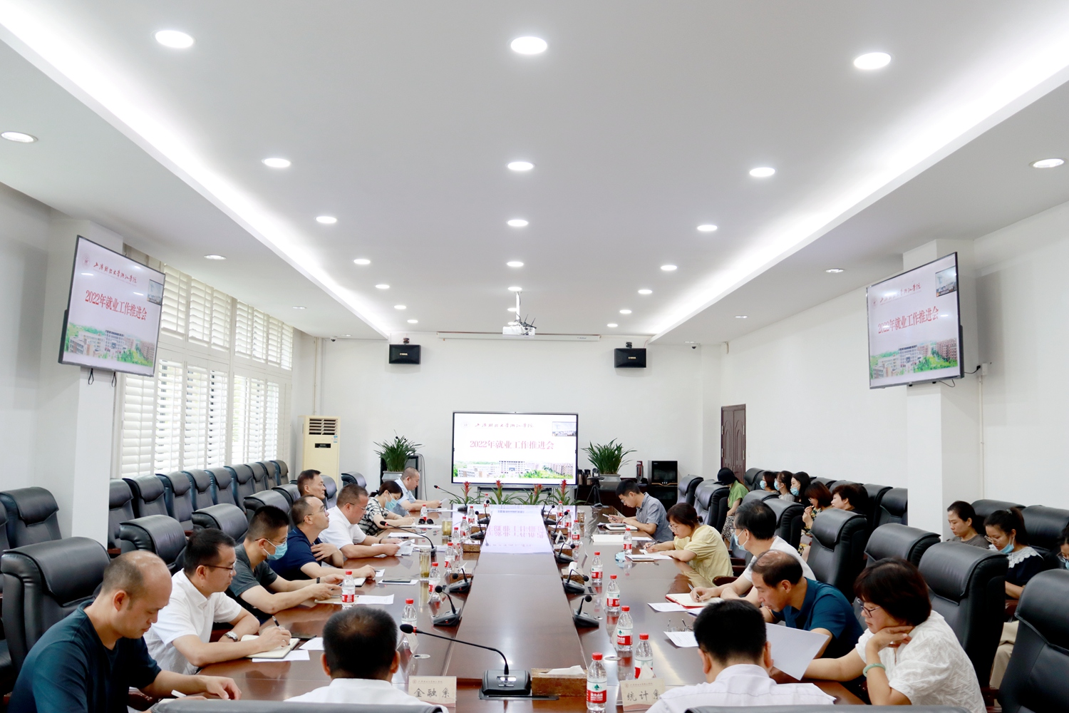 党院办、党委宣传部、教务处、学生工作部/处、团委、招生就业处(校友办)、实践教学中心(校企合作处)、创业学院等部门负责人,各系党总支负责人、系主任、学工办主任、综合办主任、全体毕业班辅导员和班主任,招生就业处全体工作人员参加会议。