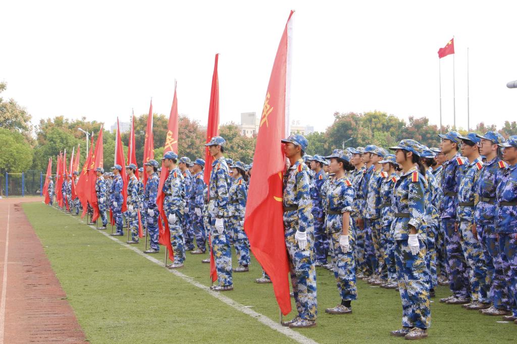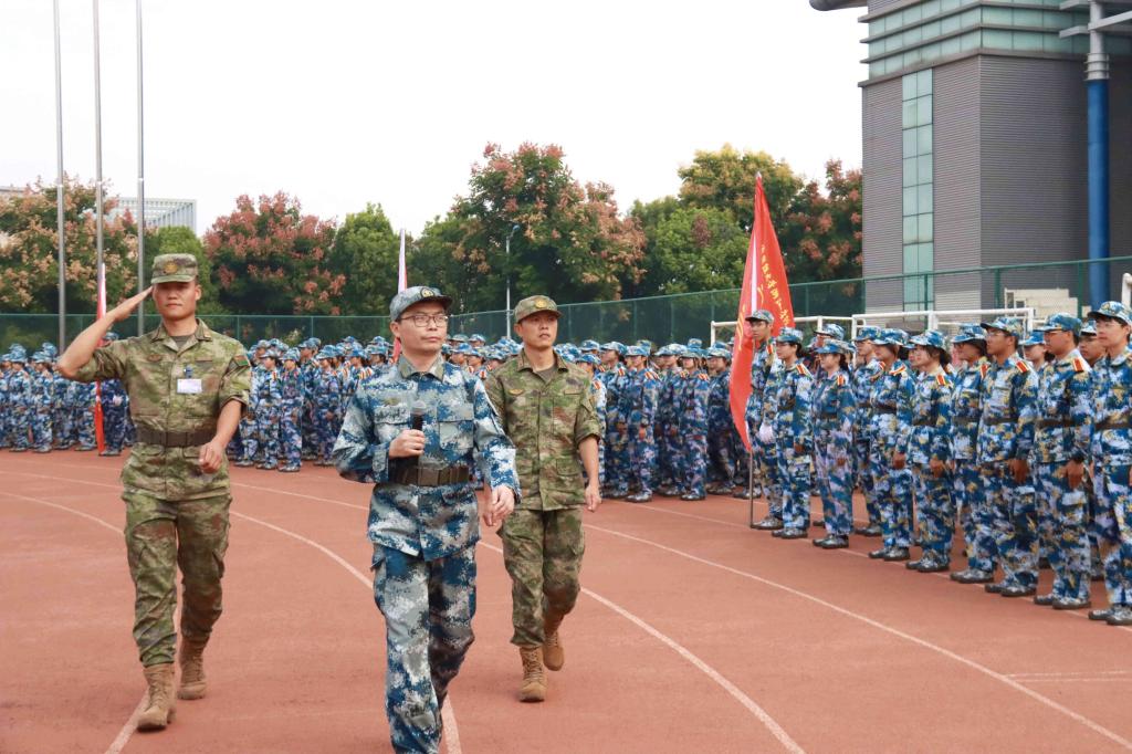 孔德民副书记在张桂东副教导员的陪同下,检阅了各军训方阵,1500余名新生军容严整、斗志昂扬,充分展现了军人般的飒爽英姿。