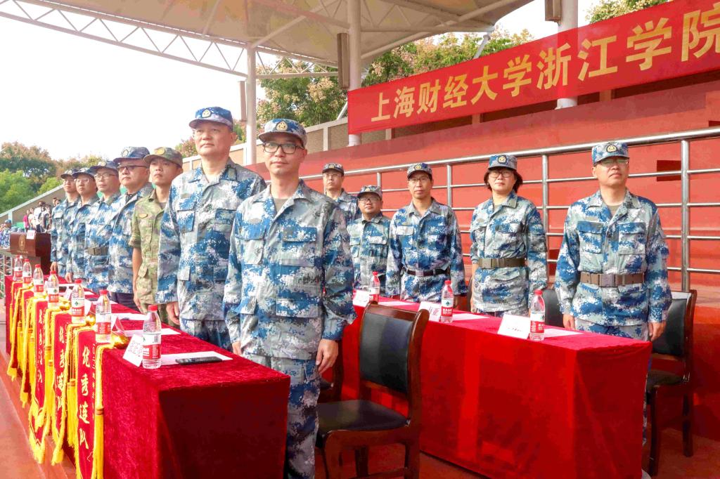 标兵就位,伴随着雄伟的进行曲,分列式正式开始。来自六个系的20个军训连队,在教官的统一指挥下,迈着整齐的步伐,喊着响亮的口号依次通过主席台接受检阅,充分展现了财浙学子朝气蓬勃、勇于拼搏、奋发向上的朝气和风采。