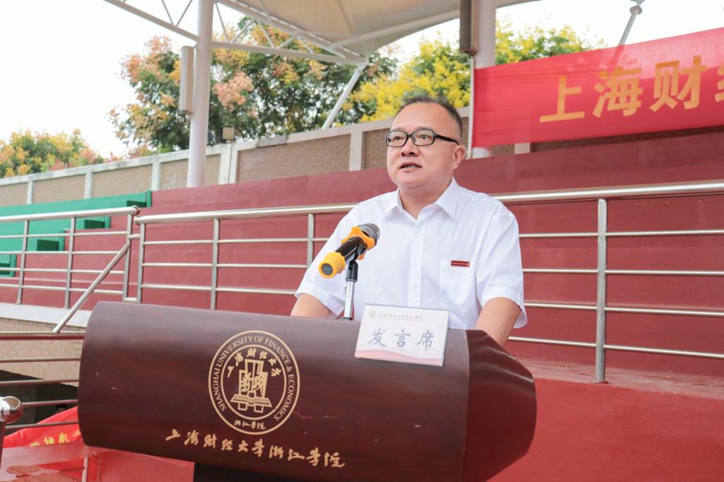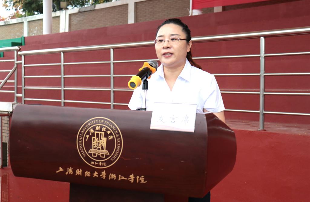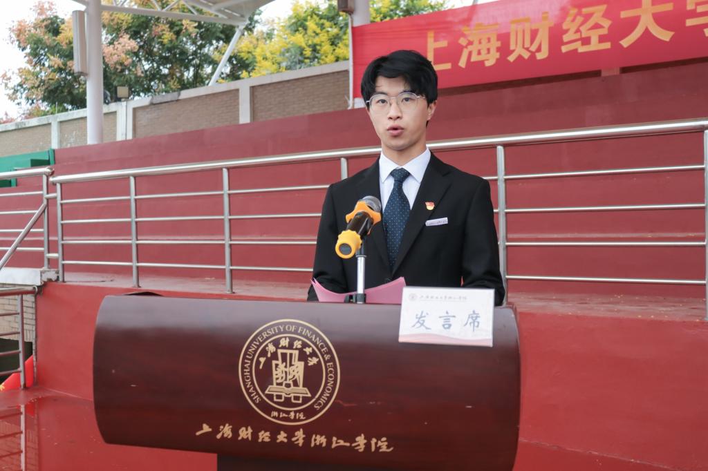 2022级会计学3班熊雨琛同学作为新生代表发言。她表示在大学四年里将和同学们一起传承“厚德博学 经济匡时”的校训精神,延续财浙人的荣光与梦想、使命和担当,续写新时代建功立业的新华章。