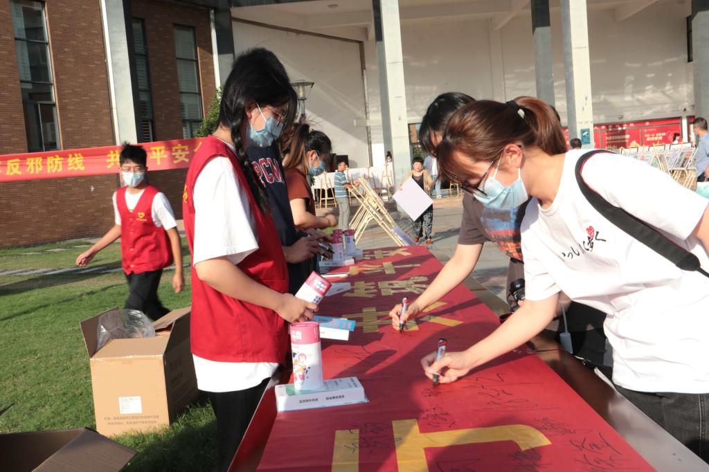 启动仪式后,我院师生300余人在“崇尚科学,反对邪教,共建平安金华”条幅上签名。活动现场设立咨询台、发放宣传资料和反邪教宣传品,开展了金华市优秀漫画作品展等活动,为师生们送来了反邪教知识“大餐”,同时号召师生们要坚信科学,反对邪教,要树立科学的世界观、人生观、价值观。