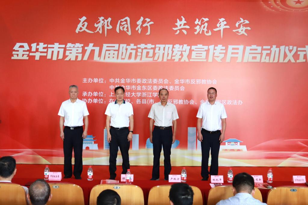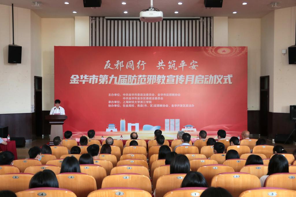 9月20日下午,驻金高校反邪教研讨会暨金华市第九届“防范邪教宣传月”启动仪式在上海财经大学浙江学院举行。省委政法委二级巡视员卢林方、市反邪教协会理事长程子林出席,市委政法委常务副书记林纪平讲话,我院党委书记王建新致辞。