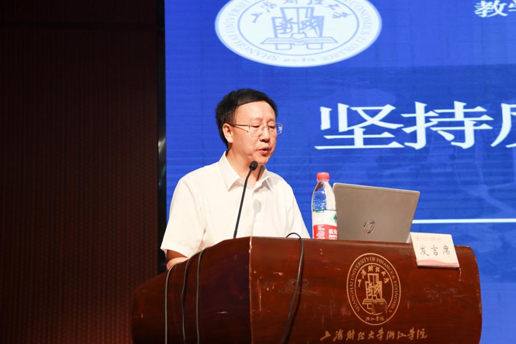 会上,上海财经大学教务处负责人江晓东应邀作了《培经世之英,育济国之才》的主题报告,各系(部)围绕专业集群建设、教学团队建设、提升人才培养质量、优化课程建设、思政教学改革等方面作了交流发言,与会人员围绕数字化教学改革、课程思政建设、校企协同育人、硕士点培育等方面进行了分组研讨并分享了交流成果。