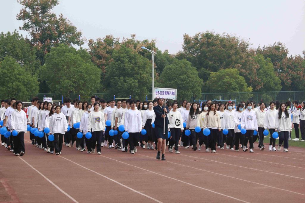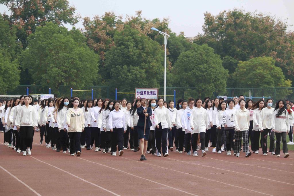 在国旗护卫队的引领下,由各系组成的运动员代表方阵踏着整齐的步伐,在高昂嘹亮的口令声中依次接受主席台领导的检阅,展现出运动员们的昂扬斗志。