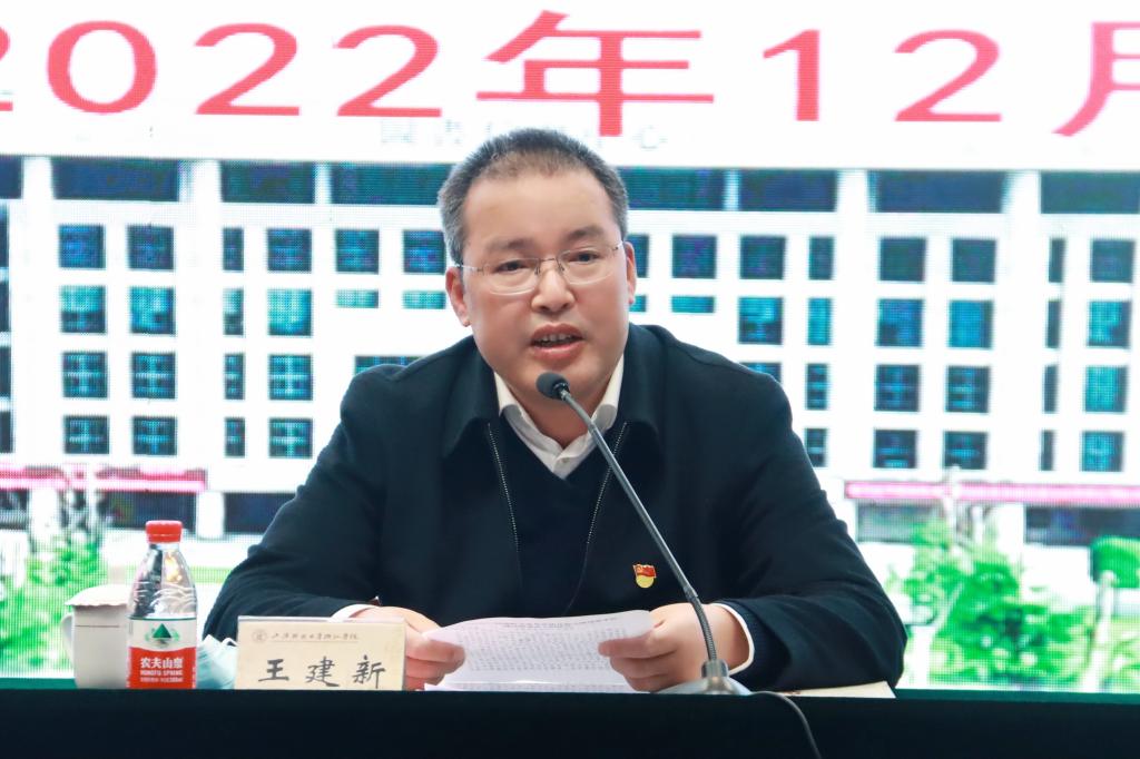 王建新在讲话中指出,开展清廉学校建设是学习贯彻习近平总书记关于党风廉政建设、廉洁文化建设的重要论述,落实省委、市委和教育系统关于清廉建设的重要举措,是建设良好校园政治生态和立德树人绿水青山的必然要求,也是打造新时代高质量育人体系,推进教育治理体系和治理能力现代化的重要抓手。在学院推进高质量发展和平稳高质量转设的新形势和新使命下,学院上下更要高度重视,充分认识清廉学校建设的重大意义,把清廉学校建设的具体要求主动融入到干部管理、师德师风建设和廉洁教育工作中去。