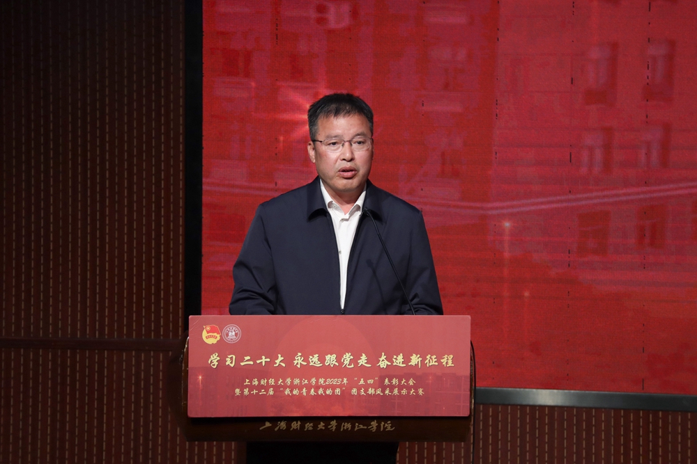 为深入学习宣传贯彻党的二十大精神,激励广大青年弘扬五四精神,勇担青春使命。在五四青年节到来之际,4月27日下午,“学习二十大、永远跟党走、奋进新征程”上海财经大学浙江学院2023年“五四”表彰大会在图书馆报告厅举行。学院党委书记王建新,党委委员、副院长曾惠成出席大会;党院办、学工部、团委负责人,各系团总支书记以及2023年“五四”评优获奖师生代表参会。