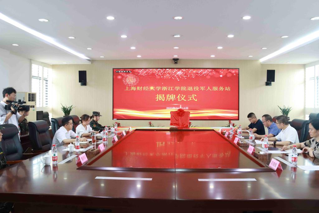 为深入贯彻落实党的二十大精神和习近平总书记关于做好退役军人工作重要指示精神,6月14日上午,学院在行政楼320会议室举行上海财经大学浙江学院退役军人服务站揭牌仪式。金华市退役军人事务局局长苏荣兵,党组成员、双拥工作处处长陈鸾吹,办公室主任吴晓敏;金东区退役军人事务局局长施群献;学院党委委员、副院长曾惠成出席,学生处负责人,退役军人服务站相关人员,退役学生代表参加。仪式由学生处负责人主持。