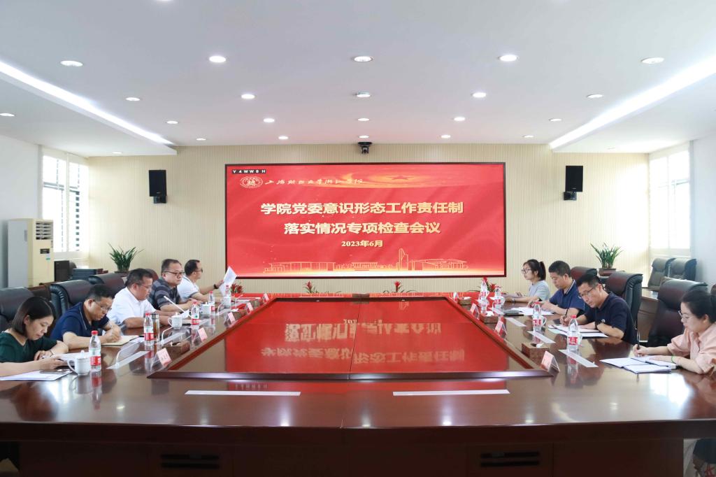 6月13日至6月14日,由金华市委宣传部部务会议成员、机关党委书记颜德杰任组长的金华市委意识形态工作责任制落实情况专项检查组来学院检查意识形态工作。检查工作以听取汇报、查阅资料、实地走访、个别谈话等形式进行。学院领导班子成员及相关职能部门负责人参加汇报会。会议由党委书记王建新主持。