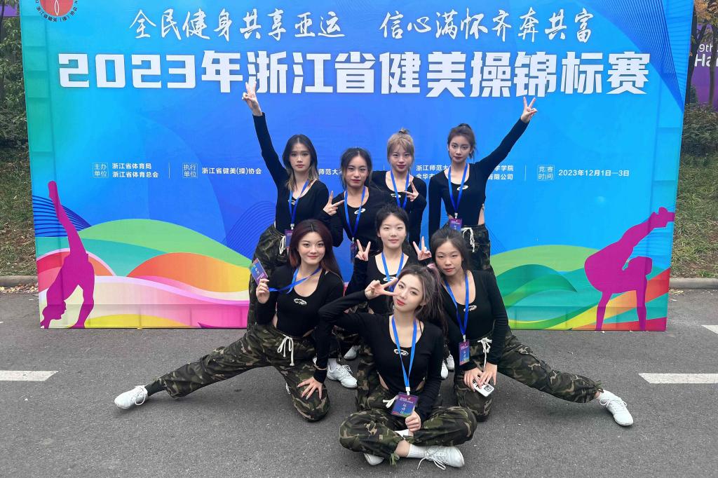 2023年12月1日—3日,由浙江省体育局,浙江省体育总会主办,浙江省健美操协会执行,浙江师范大学体育健康科学学院协办的2023年浙江省健美操锦标赛在浙江师范大学举行。本次赛事吸引了全省各地60余所学校的参与,近1200名运动员参与了本次比赛。公共基础部、体育教学部关焱老师指导的健美操队,全场奋勇拼搏、尽展运动艺术之美,荣获街舞赛事院校组(本科)小集体——全国大体协街舞推广套路Street jazz一等奖。