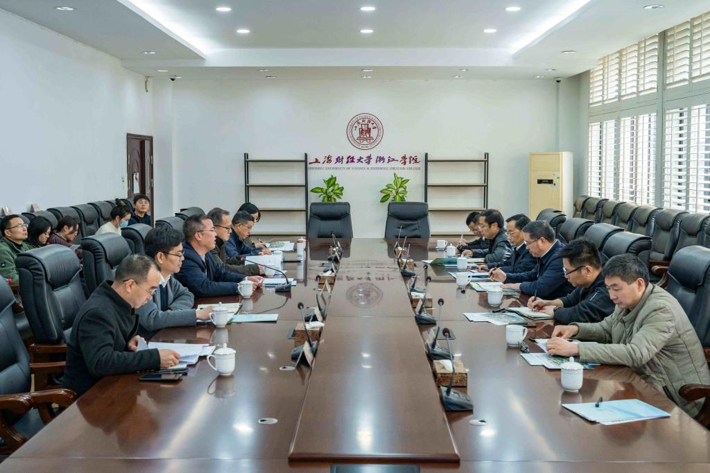3月8日下午,市委常委、常务副市长张新宇一行来我院调研指导工作。市政府副秘书长于纲,市教育局、市资规局、金华高等研究院主要负责人,市人社局、市建设局分管负责人陪同调研。