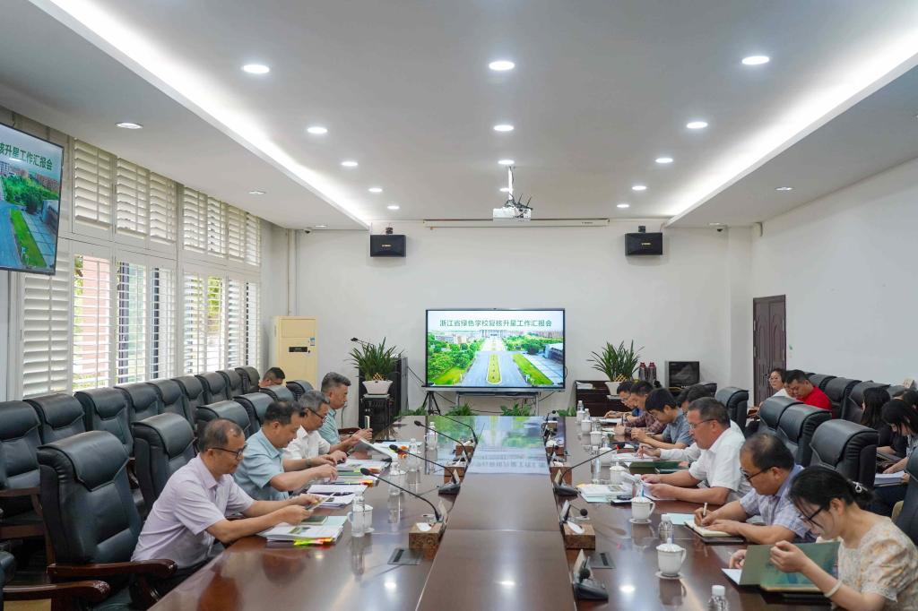 5月30日,浙江省绿色学校(高等学校)复核升星工作专家一行,来我院对绿色学校复核升星工作情况进行核验。学院党委书记王建新、党委副书记何志强及绿色学校工作领导小组成员参加汇报会。