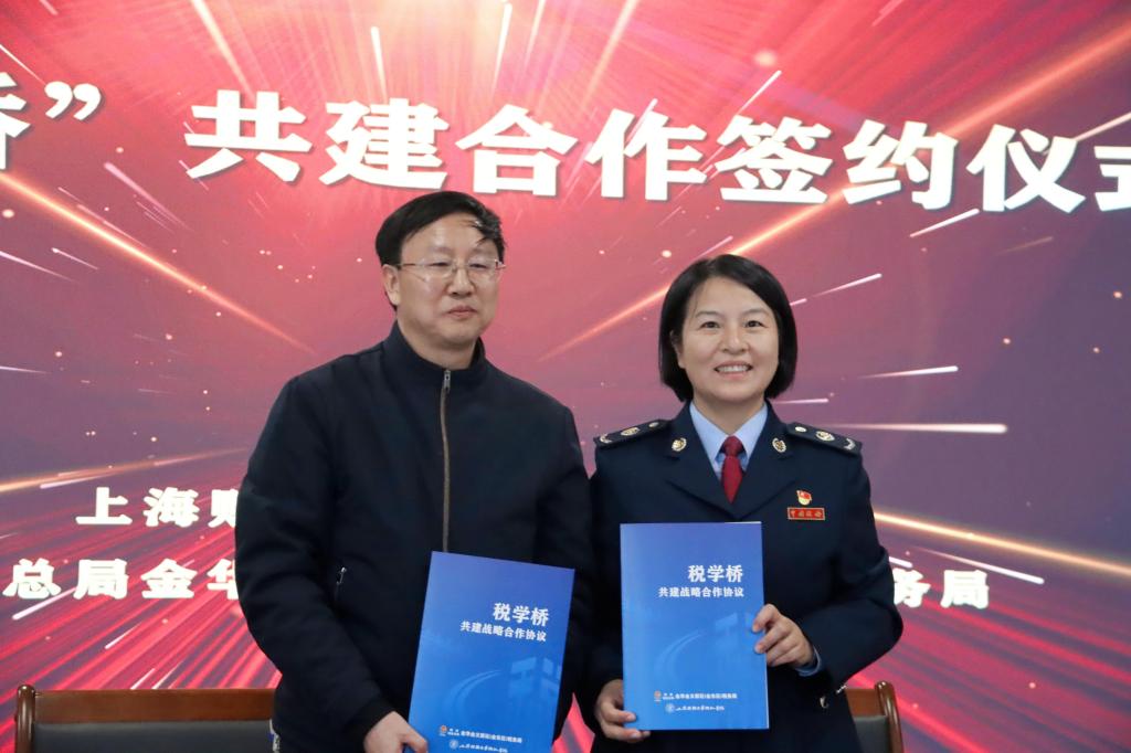 12月26日下午,学院与国家税务总局金华金义新区(金东区)税务局战略合作协议签约仪式在税务局举行。金东区委常委、副区长夏志坚,金义新区(金东区)税务局党委书记、局长陈瑛,党委委员、副局长沈立言;学院院长马洪,副院长邱风,组织部、会计系相关负责人及教师代表出席签约仪式。