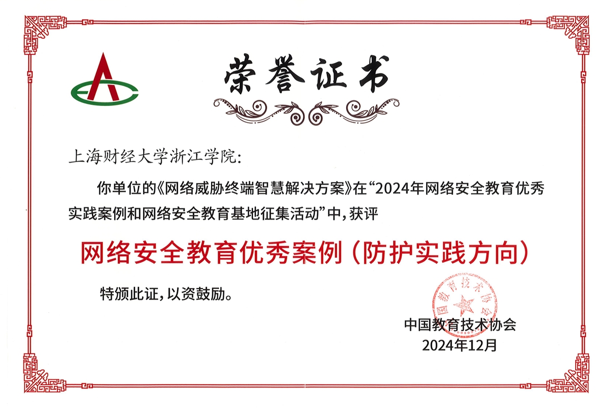 近日,由中国教育技术协会主办的2024年网络安全教育优秀实践案例和网络教育基地征集活动评选结果揭晓。教育技术中心申报的《网络威胁终端智慧解决方案》获评网络安全教育优秀案例。