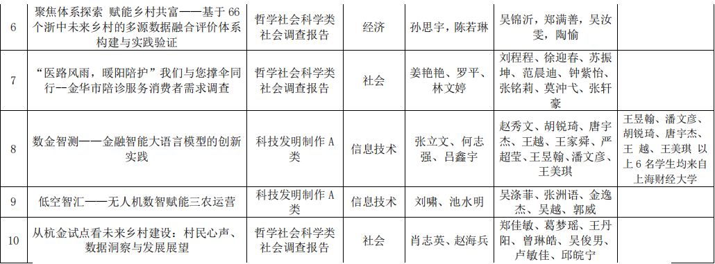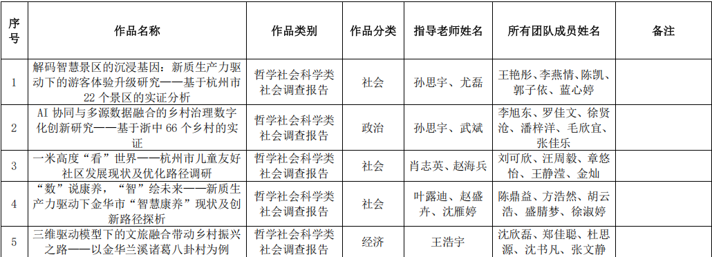 为全面贯彻党的二十大和二十届二中、三中全会精神, 深入落实全国科技大会和全国教育大会精神,一体推进教育发展、科技创新、人才培养,广泛凝聚实施科教兴国战略、人才强国战略、创新驱动发展战略的青春力量,我院各系部全面发动、认真准备参赛作品,经初赛筛选评审、校内决赛及专家评审,拟推荐以下10个团队项目代表我院参加浙江省第十九届“挑战杯”大学生课外学术科技作品竞赛,现予以公示。