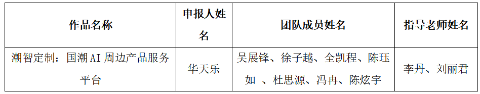 为深入贯彻党的二十大和二十届二中、三中全会精神,促进人工智能与经济发展、社会民生深度融合,培养一批既懂人工智能技术又熟悉行业发展的复合型人才,助力培育发展新质生产力,根据 2025 年浙江省大学生创新创业大赛相关工作安排,我院各系部全面发动、认真准备参赛作品,经评审,拟推荐以下1个团队项目代表我院参加浙江省第十九届“挑战杯”大学生课外学术科技作品竞赛“人工智能+”专项赛作品竞赛,现予以公示。