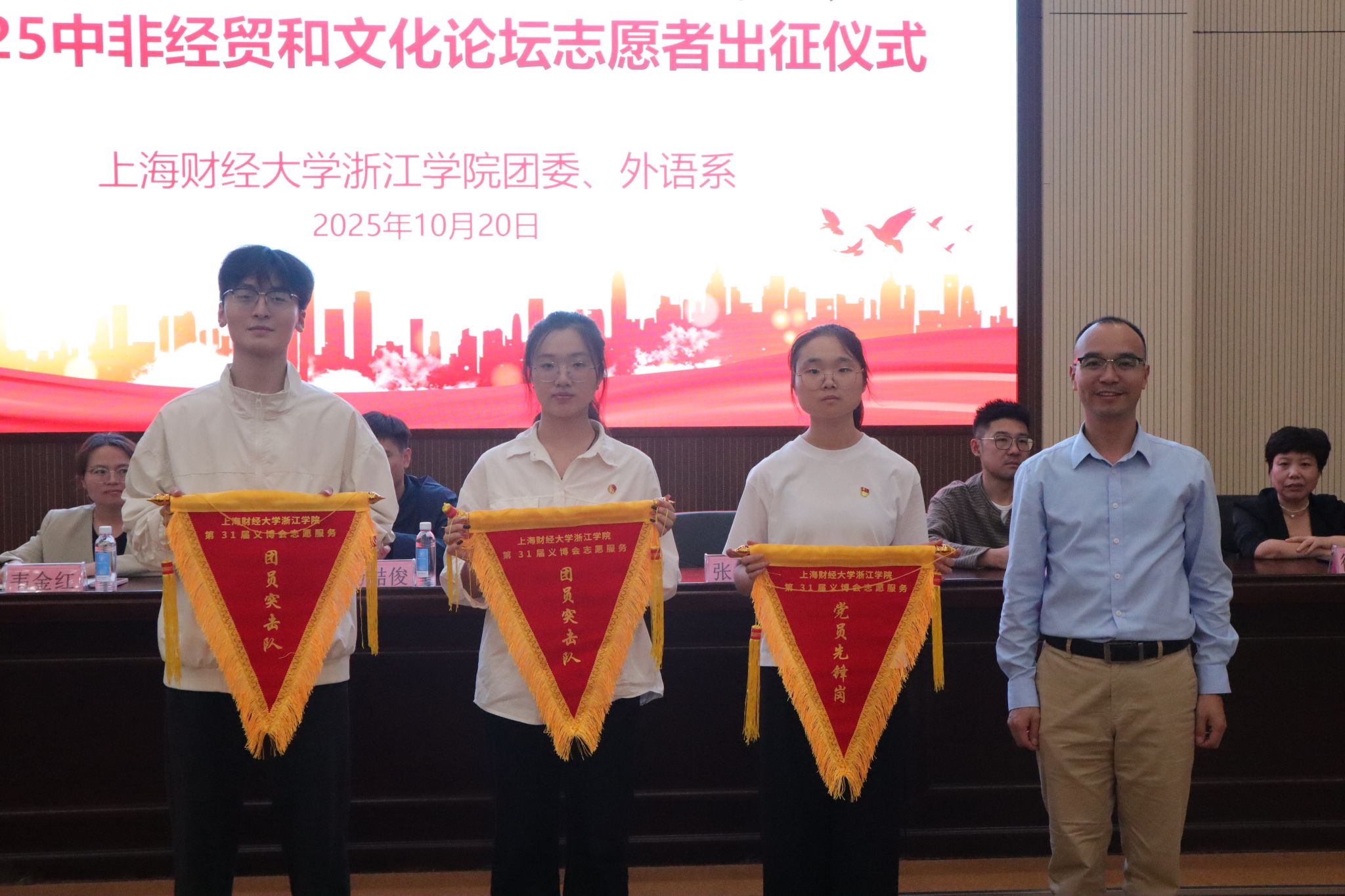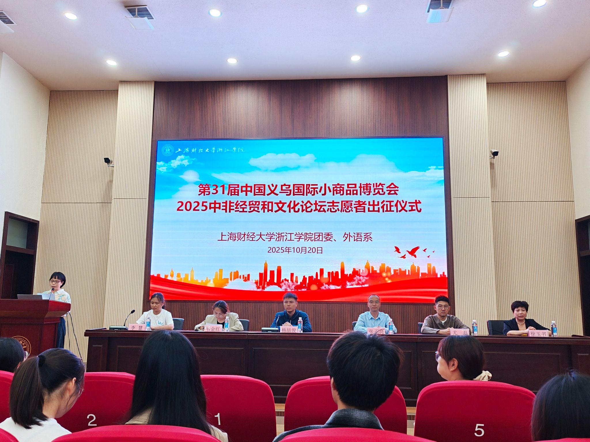 10月20日下午,学院在第28-120报告厅举行第31届义博会暨2025中非经贸和文化论坛志愿者出征仪式。学院党委副书记杨喆俊,学院党委委员、组织部部长、宣传部部长张正亮,宣传部、学生处、团委有关负责人、外语系相关负责人及师生志愿者参加仪式。