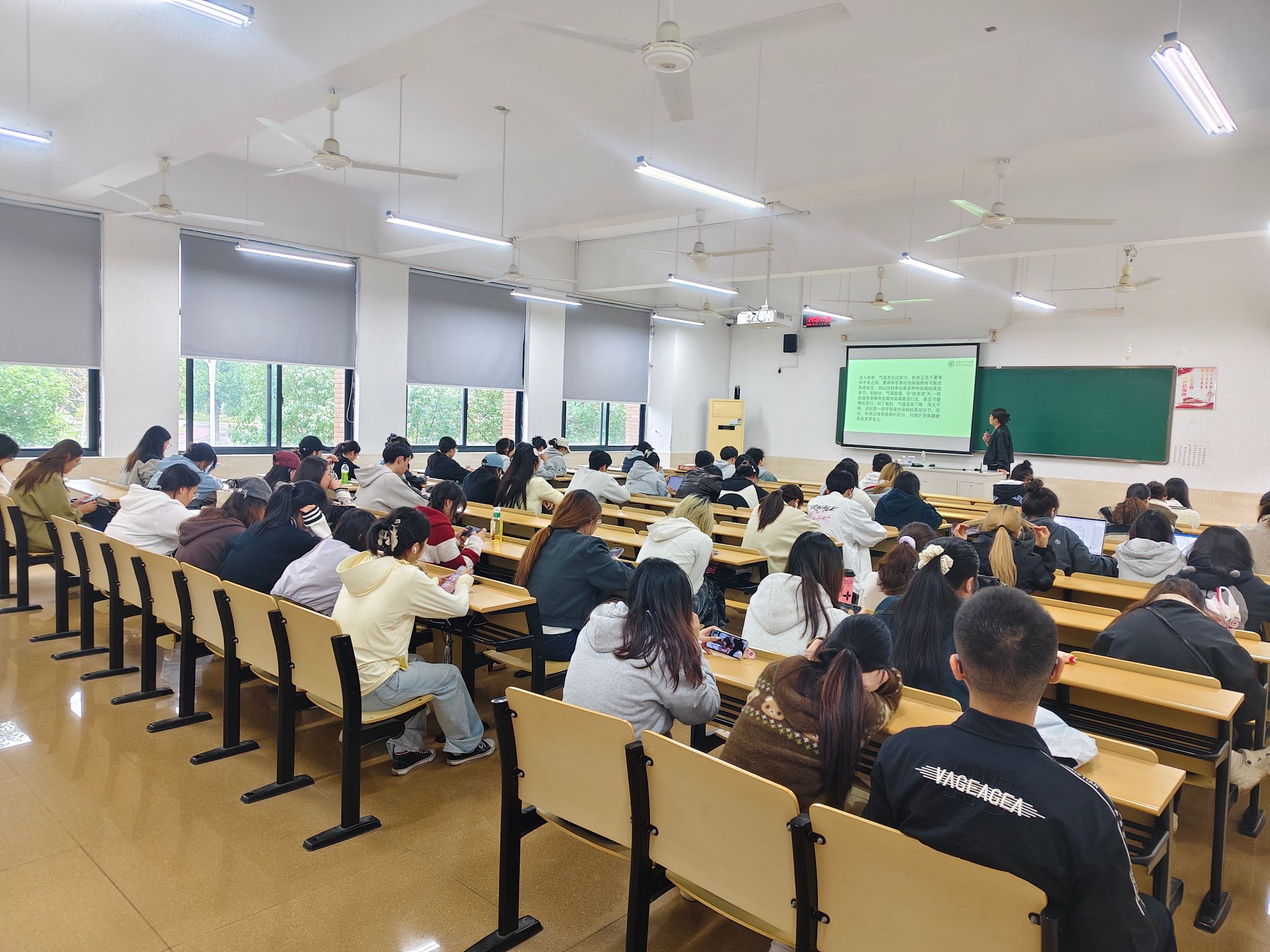讲座中,王昱凭借其丰富的临床经验和专业的医学知识,用通俗易懂的语言,为在场学生系统讲解了常见秋季传染病的类型、传播途径、临床症状及危害。王昱不仅介绍了科学的预防措施,如勤洗手、常通风、戴口罩、均衡营养、加强锻炼等,还特别强调了及时接种疫苗的重要性,纠正了同学们在日常防护中存在的一些误区。