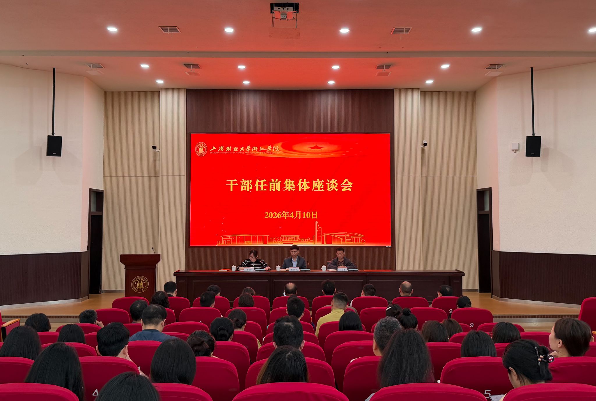 4月10日上午,学校在行政楼28幢120报告厅召开内设科级干部任前集体谈话会。党委副书记杨喆俊出席会议并讲话,纪委办公室主任潘徐恩作廉政教育谈话,会议由机关党委副书记、党委组织部副部长项姝珍主持。