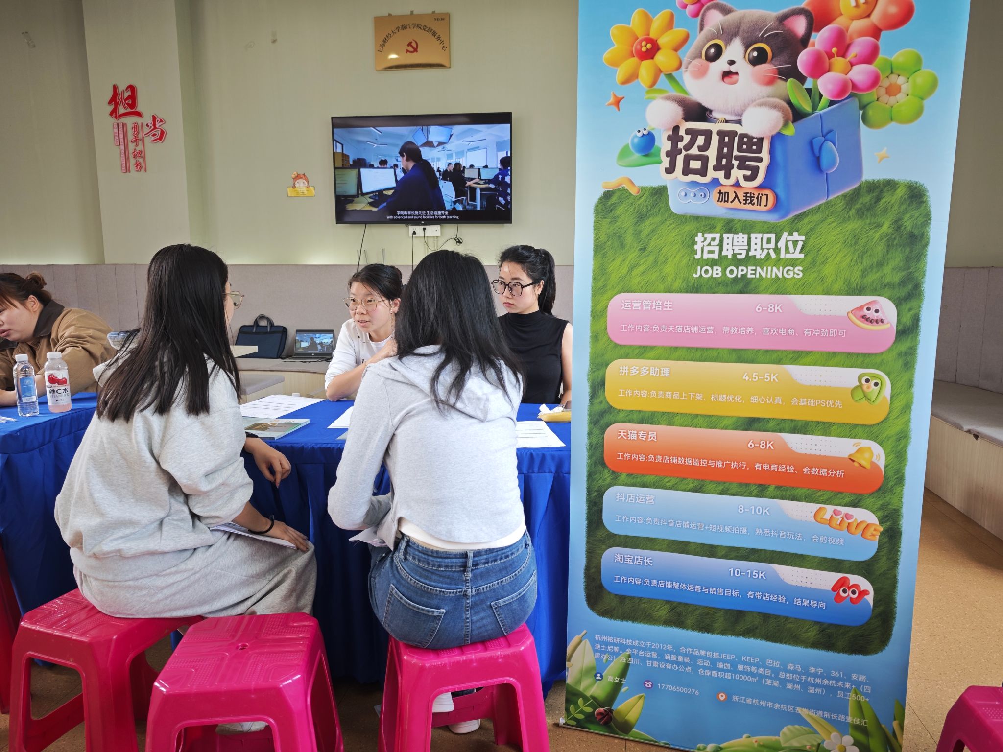 党委副书记杨喆俊莅临招聘会现场,亲切与参会企业代表、求职毕业生沟通交流,详细询问企业招聘需求、岗位要求及薪资待遇,关切了解毕业生求职意向、职业规划及求职过程中遇到的困难。两学院相关负责人陪同参加,全程跟进招聘会开展情况,协调解决现场各类问题,保障招聘会有序高效推进。