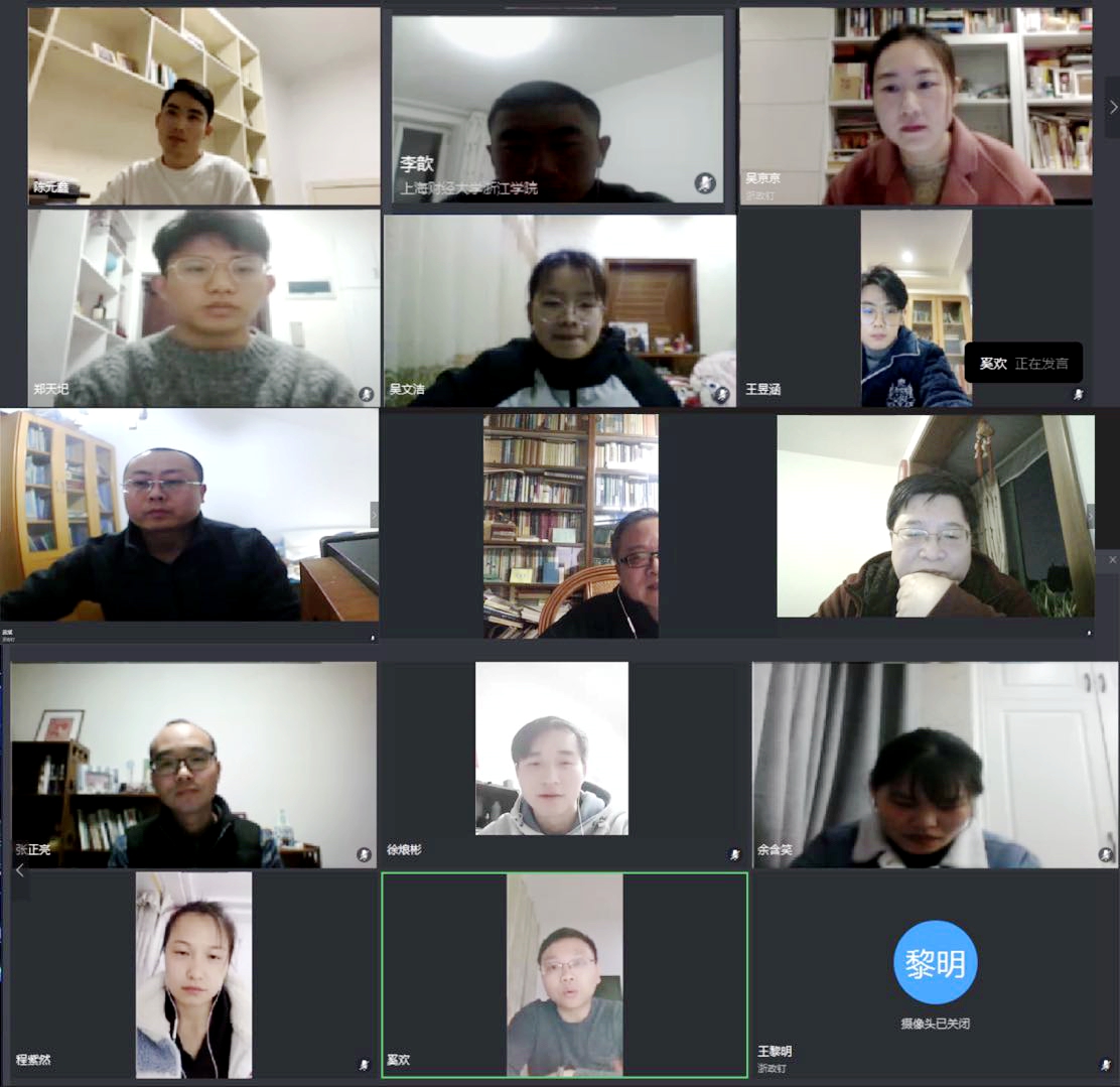 师生代表纷纷发言,讲述自己与家人的抗“疫”故事,以及在线教学、学习的相关情况。身在湖北黄冈的奚欢老师向大家讲述疫情期间参与在线教学的经历:“因为疫情影响,我一月底就投入在线教学的前期准备工作了,由于农村老家白天比较嘈杂,网络又不太稳定,我都是在凌晨进行在线教学录播工作的。目前,我的在线教学工作能够顺利的完成,获得学生们的认可,一切辛苦都是值得的。”家住湖北麻城市的2017级应用统计学(金融统计)2班程紫然同学动情的说:“身在疫情重灾区,更能感受来自社会和学校的温暖。老师和同学经常打电话关心和慰问我。我们在线学习时会遇到一些困难,老师们准备在线教学更是不易,老师们辛苦了。”