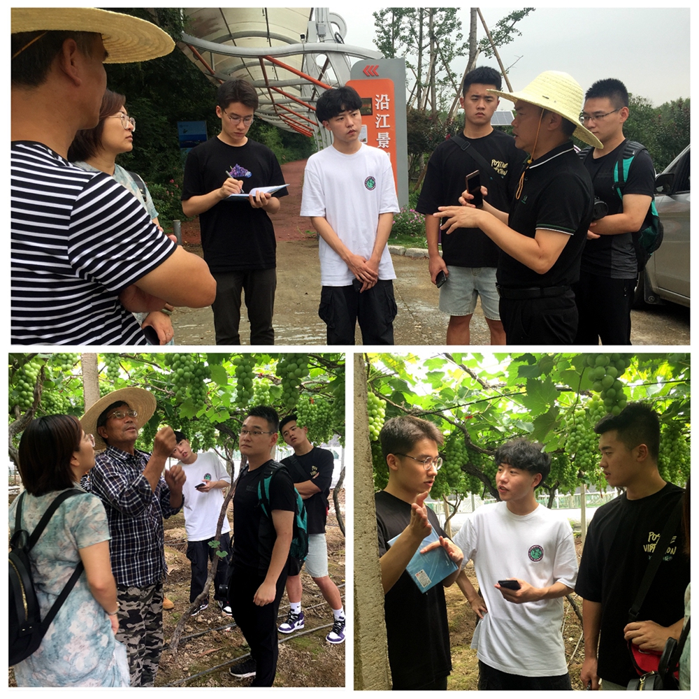 在素有“江南吐鲁番”美誉之称的浦江县黄宅镇横山村葡萄种植基地,调研了巨峰葡萄的种植技术,近距离感受横山村葡萄种植环境和生长状况,了解了今年葡萄销售的渠道。团队成员边听边看边记录,与葡萄亲密接触后,对横山村葡萄有了更直观的认识,同时也加深了对葡萄产业链的了解,为后续农特产品营销提供了保障。