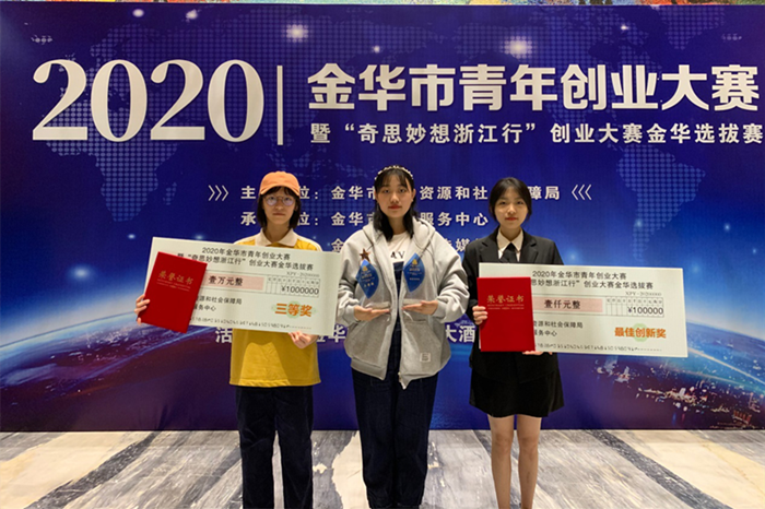 10月29日下午,由金华市人力资源和社会保障局主办,金华市就业服务中心承办的金华市青年创业大赛暨“奇思妙想浙江行”创业大赛金华选拔赛,在金华市瑞莱克斯大酒店举行。我院“BLACK CLOUD工作室——专注于二次元IP改造与运营”创业团队获得三等奖和最佳创新奖,奖金一万一千元。