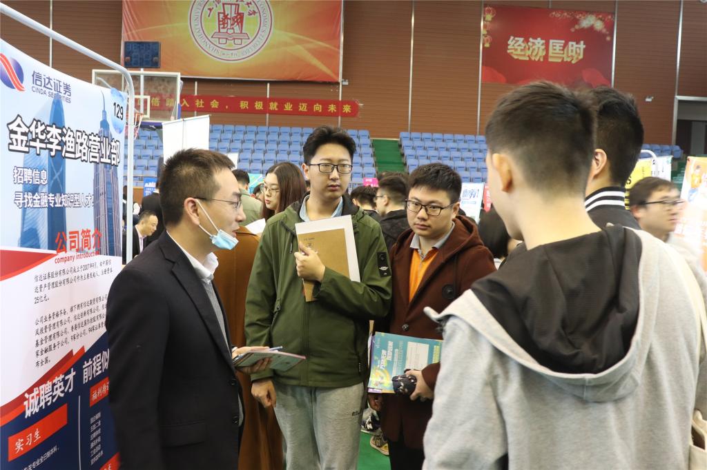 为了更好地拓宽毕业生就业渠道,大力构建毕业生与用人单位的交流平台,积极为用人单位输送应用型人才,11月20日上午,“百校千企十万岗”大学生引才“财经类”专场招聘会和实习对接会暨上海财经大学浙江学院2021届毕业生招聘会在校体育馆举行。金华市人才服务和人事考试中心副主任沈慧娟一行、上海财经大学浙江学院党委副书记孔德民、相关职能部门负责人、与会企业代表、2021届毕业生及大三学生参加了招聘会。