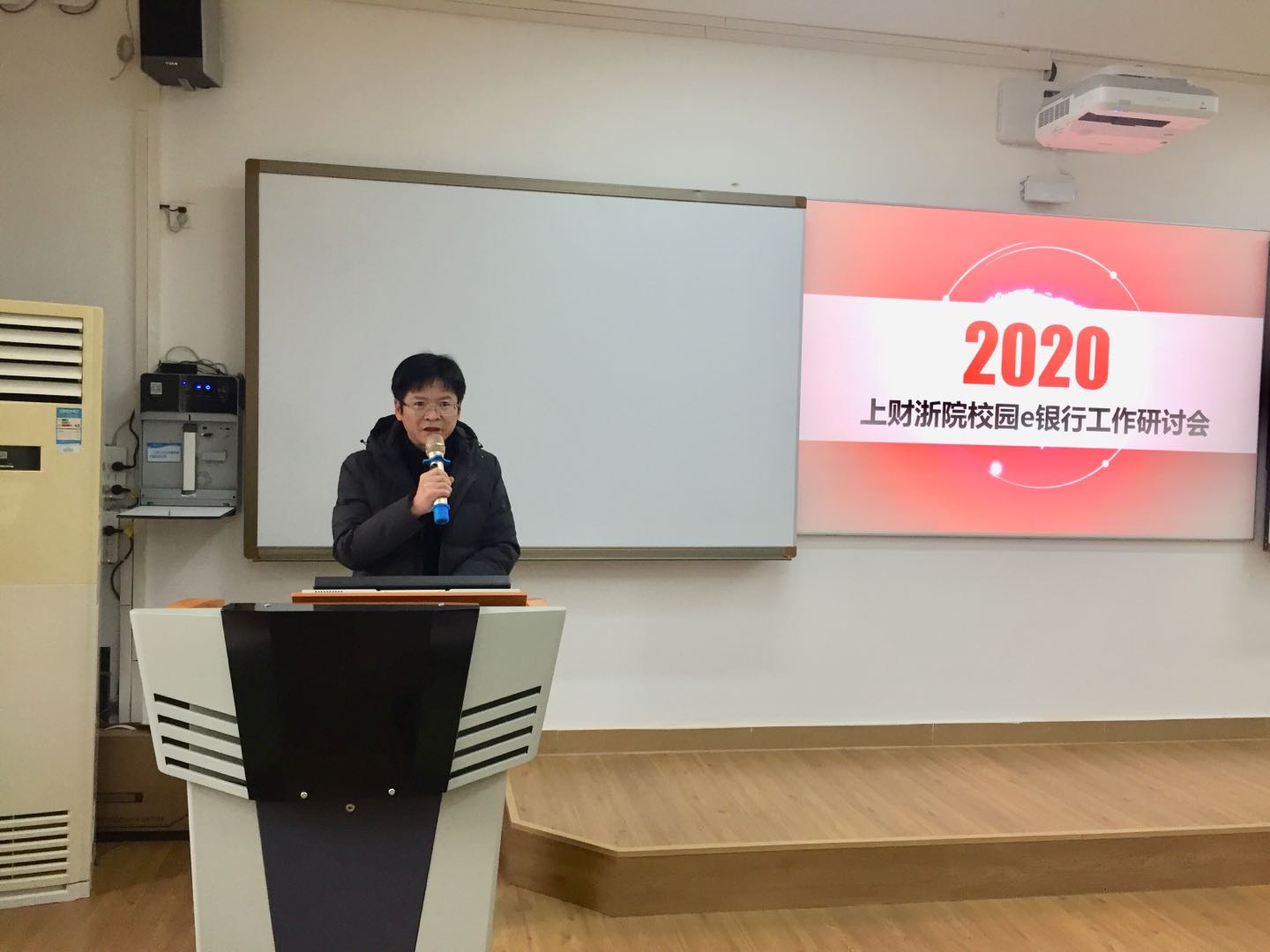 12月17日下午,上财浙院校园e银行工作总结会在教学楼8-108顺利开展。中国建设银行金华分行副行长卢根喜、建行相关部门经理,学院副院长邱风,实践教学中心、计划财务处负责人,金融系教师代表,校园e银行工作组成员参加了会议。